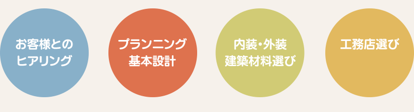 内外装のプランニングから図面作成、建築材料の選定、お客様に合った工務店の紹介も致します。